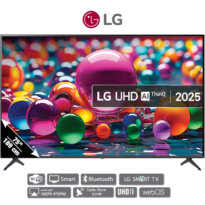 3840×2160p 4K UHD çözünürlük, Direct LED panel, 60 Hz ekran yenileme hızı, HDR10 ve HLG desteği, 3×HDMI ve 2×USB bağlantı girişi, 2 kanallı 20W ses çıkışı, α5 Gen6 AI 4K işlemci, WebOS 24 işletim sistemi, Google Assistant ve ThinQ AI desteği, Screen Mirroring ve Smart TV özellikleri