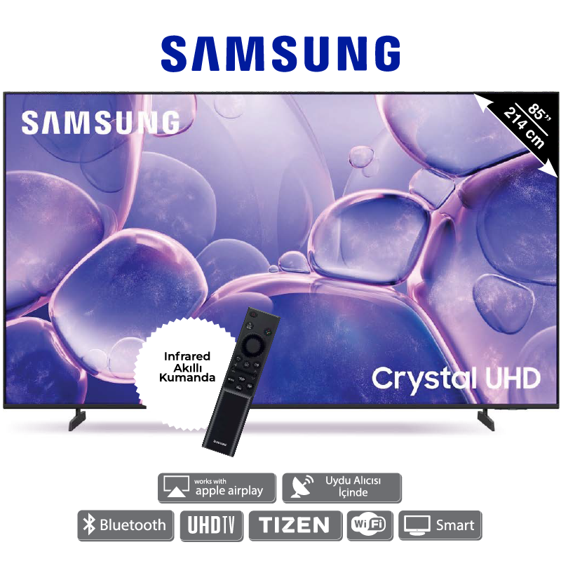 3840×2160p 4K UHD çözünürlük, Crystal UHD ekran teknolojisi, 50 Hz ekran yenileme hızı, HDR10+ ve HLG desteği, 3×HDMI ve 1×USB bağlantı girişi, Q Symphony ve Adaptive Sound ses teknolojisi, Crystal 4K işlemci, Tizen işletim sistemi, Screen Mirroring ve Smart TV özellikleri
